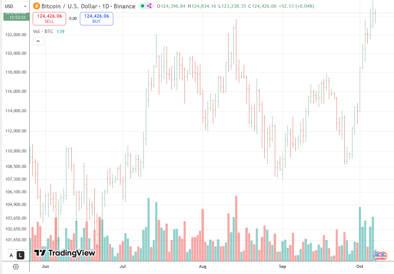BTC (BTC) continues to hover near record highs, trading around $124,500 as strong bullish momentum drives optimism across the market. The cryptocurrency recently broke above its previous all-time high near $125,000, signaling renewed investor confidence and sustained demand. However, technical indicators suggest the rally may face short-term resistance before confirming a new leg higher.