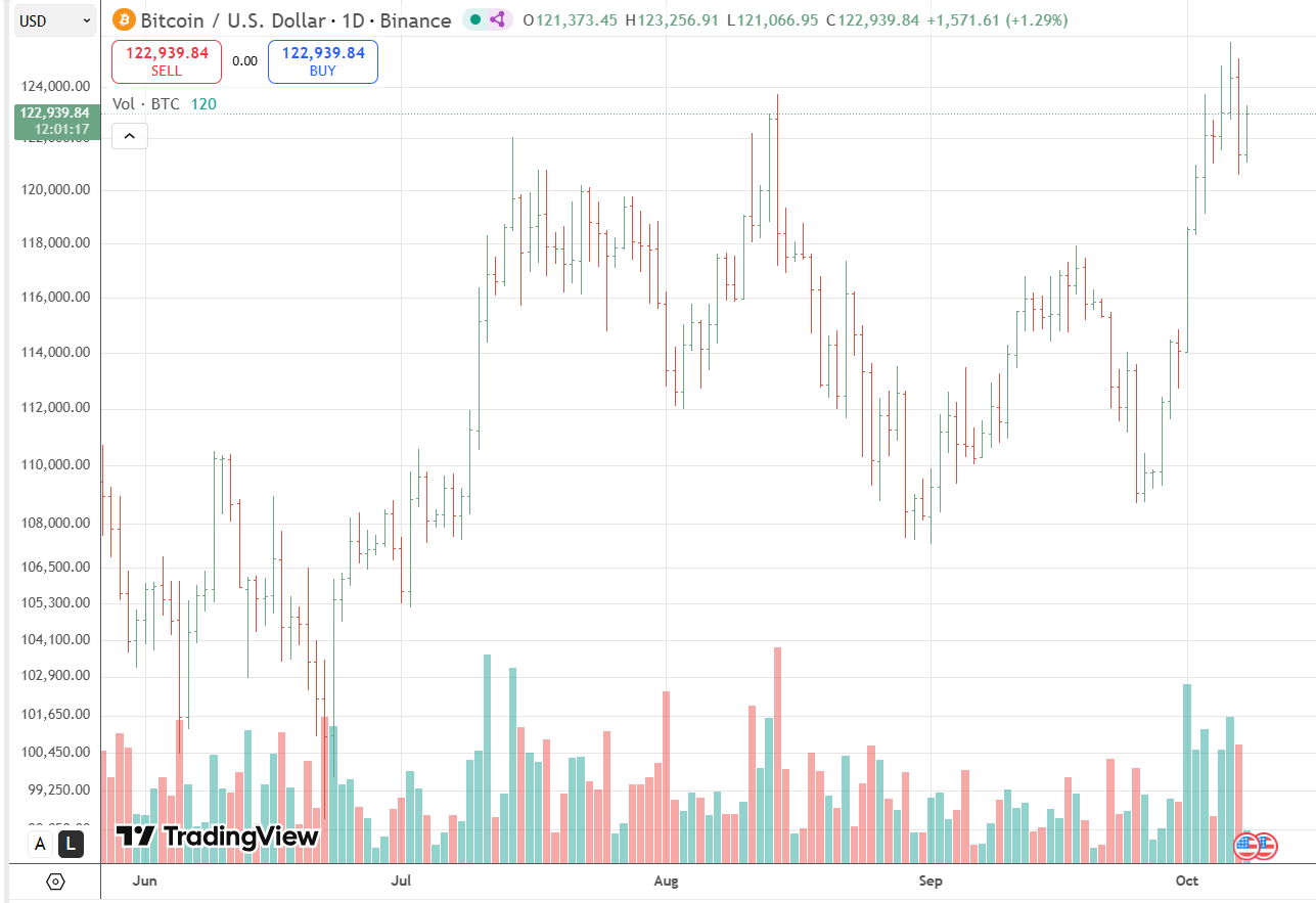 BTC (BTC) is showing mixed signals later than recently breaking to record highs above $125,000 before easing to around $122,893 at the latest session. The leading cryptocurrency has gained momentum in recent weeks, but technical indicators suggest the rally may be losing steam as traders weigh whether this is a consolidation phase or the begin of a deeper pullback.