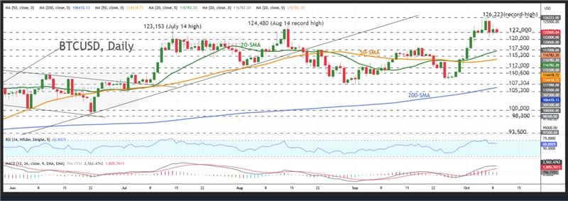 BTC (BTCUSD) is extending its consolidation near the 122,100 threshold later than rebounding from Tuesday’s sharp drop of over from its 125,000-126,000 record peak territory, as rising profit-taking pressure keeps investors cautious.